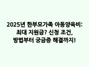 - 2025년 한부모가족 아동양육비: 최대 지원금? 신청 조건, 방법부터 궁금증 해결까지!홀로 아이를 키우는 한부모가족에게 양육비는 언제나 가장 큰 걱정거리 중 하나일 것입니다. 사랑하는 자녀에게 부족함 없는 환경을 제공하고 싶지만 현실적인 어려움에 부딪히는 경우가 많죠. 이럴 때 정부에서 지원하는 ‘한부모가족 아동양육비 지원’ 정책은 큰 힘이 될 수 있습니다. 2025년 새롭게 개편될 지원 내용을 미리 확인하고, 우리 가족에게 꼭 필요한 혜택을 … Read more