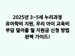 - 2025년 3~5세 누리과정 유아학비 지원, 우리 아이 교육비 부담 덜어줄 월 지원금 신청 방법 완벽 가이드!사랑스러운 우리 아이의 교육은 부모님에게 늘 가장 중요한 관심사입니다. 하지만 급변하는 경제 상황 속에서 아이의 학비는 적지 않은 부담으로 다가오기도 하죠. 다행히 대한민국 정부는 우리 아이들이 경제적 어려움 없이 양질의 교육을 받을 수 있도록 다양한 지원 정책을 펼치고 있습니다. 그중에서도 3~5세 누리과정 유아학비 지원은 소득 수준과 관계없이 모든 가정에 … Read more
