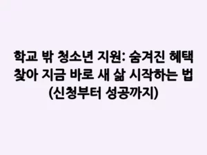 - 학교 밖 청소년 지원: 숨겨진 혜택 찾아 지금 바로 새 삶 시작하는 법 (신청부터 성공까지)학교 밖에서 홀로 어려움을 겪고 계신가요? 미래에 대한 막막함과 막연한 불안감에 힘들어하는 청소년들이 많습니다. 하지만 이제 혼자 고민하지 마세요. 정부는 학교 밖 청소년들이 건강한 사회구성원으로 성장할 수 있도록 든든한 지원 프로그램을 제공하고 있습니다. 이 글을 통해 당신에게 필요한 모든 정보를 쉽고 빠르게 찾아가세요. 이 프로그램, 대체 누가 받을 수 … Read more