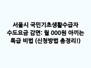 - 서울시 국민기초생활수급자 수도요금 감면: 월 000원 아끼는 특급 비법 (신청방법 총정리!)매달 고정적으로 지출되는 생활비, 그중에서도 수도요금은 무시할 수 없는 부담으로 다가오곤 합니다. 특히 경제적으로 어려움을 겪는 국민기초생활수급자 가구에게는 작은 금액이라도 생활의 큰 도움이 될 수 있는데요. 서울시에서 이러한 가구의 생활 안정을 돕기 위해 특별한 수도요금 감면 제도를 시행하고 있다는 사실, 알고 계셨나요? 오늘은 서울시 국민기초생활수급자라면 놓쳐서는 안 될 수도요금 … Read more