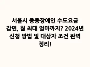 - 서울시 중증장애인 수도요금 감면, 월 최대 얼마까지? 2024년 신청 방법 및 대상자 조건 완벽 정리!매달 날아오는 각종 공과금 고지서, 혹시 부담으로 느껴지시나요? 특히 중증장애인 가구의 경우, 예기치 않은 지출과 함께 생활비 부담이 더욱 크게 느껴질 수 있습니다. 하지만 걱정 마세요! 서울시에서는 이런 가계 부담을 덜어드리고자 중증장애인 세대를 위한 특별한 수도요금 감면 제도를 시행하고 있습니다. 이 글을 통해 감면 혜택부터 신청 방법까지 모든 것을 … Read more