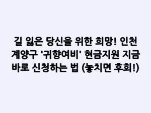 - 길 잃은 당신을 위한 희망! 인천 계양구 ‘귀향여비’ 현금지원 지금 바로 신청하는 법 (놓치면 후회!)삶의 터전을 잃고 길 위에서 힘든 시간을 보내는 분들을 위한 소중한 지원책이 있습니다. 특히 예기치 못한 상황으로 고향으로 돌아갈 엄두조차 내지 못하는 분들을 위해 지자체에서 ‘귀향여비’를 지원하고 있다는 사실, 알고 계셨나요? 오늘은 인천 계양구에서 제공하는 행려자 보호 및 지원 서비스 중 ‘귀향여비 현금지원’에 대해 자세히 알려드리겠습니다. 지금 바로 확인하시고 … Read more