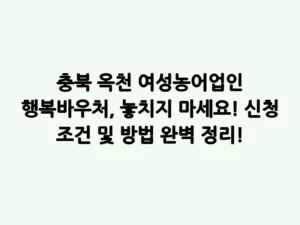 - 충북 옥천 여성농어업인 행복바우처, 놓치지 마세요! 신청 조건 및 방법 완벽 정리!안녕하세요, 삶의 질을 높이는 복지 정보를 전달하는 복지 정보 전문 블로거입니다. 늘 고된 농작업과 가사를 병행하며 바쁘게 살아가는 농어촌 여성분들, 잠시 숨 돌릴 여유조차 찾기 어려우셨죠? 문화생활을 즐기거나 여가 활동을 위한 시간이 부족해 아쉬움을 느끼셨을 겁니다. 이런 어려움을 겪는 충북 옥천 지역 여성농어업인들을 위한 반가운 소식이 있어 빠르게 가져왔습니다! … Read more