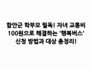 - 함안군 학부모 필독! 자녀 교통비 100원으로 해결하는 ‘행복버스’ 신청 방법과 대상 총정리!자녀들의 학원비, 식비에 이어 교통비까지… 매달 나가는 고정 지출에 한숨 쉬는 함안군 학부모님들 많으시죠? 특히 청소년 자녀를 둔 가정이라면 통학이나 여가 활동으로 인한 교통비 부담이 적지 않을 텐데요. 오늘 제가 소개해 드릴 함안군의 특별한 복지 정책은 바로 ‘청소년 어린이 100원 행복버스’입니다. 이 사업은 단순히 교통비 부담을 덜어주는 것을 넘어, … Read more