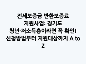- 전세보증금 반환보증료 지원사업: 경기도 청년·저소득층이라면 꼭 확인! 신청방법부터 지원대상까지 A to Z소중한 전세 보증금, 혹시 떼일까 봐 밤잠 설치고 계신가요? 최근 전세 사기, 깡통 전세 같은 불안한 소식들이 들려올 때마다 마음 졸이는 분들이 많으실 겁니다. 특히 사회 초년생 청년층이나 경제적 어려움을 겪는 저소득층에게 전세 보증금은 전 재산과 다름없기에 그 불안감은 더욱 클 수밖에 없는데요. 하지만 이제 걱정은 잠시 내려두세요! 여러분의 … Read more