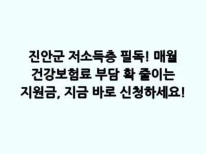 - 진안군 저소득층 필독! 매월 건강보험료 부담 확 줄이는 지원금, 지금 바로 신청하세요!매월 고정적으로 지출되는 건강보험료, 특히 저소득층에게는 결코 가볍지 않은 부담일 텐데요. 아프면 병원에 가야 하는데, 건강보험료 걱정부터 앞선다면 너무나 안타까운 일입니다. 다행히 진안군에서는 이러한 어려움을 겪는 저소득 주민들을 위해 국민건강보험료를 지원하는 반가운 제도를 운영하고 있습니다. 이 글을 통해 매월 나가는 건강보험료 부담을 덜고, 건강한 생활을 유지할 수 있는 방법을 … Read more