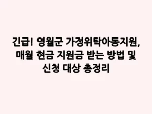 - 긴급! 영월군 가정위탁아동지원, 매월 현금 지원금 받는 방법 및 신청 대상 총정리가정위탁아동을 돌보는 일은 정말 숭고하고 아름다운 일입니다. 하지만 아이들을 키우는 데는 현실적인 어려움이 따르기 마련인데요. 특히 경제적인 부담은 위탁 가정을 힘들게 하는 주된 요인 중 하나입니다. 이러한 어려움을 덜어드리고자 영월군에서는 가정위탁아동을 위한 든든한 지원책을 마련했습니다. 바로 ‘가정위탁아동지원’인데요, 매월 현금으로 지원금을 받을 수 있는 이 정책에 대해 자세히 알아보겠습니다. 가정위탁아동지원, … Read more