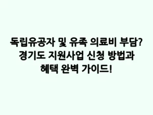 - 독립유공자 및 유족 의료비 부담? 경기도 지원사업 신청 방법과 혜택 완벽 가이드!나라를 위해 헌신하신 독립유공자와 그 유족분들께, 의료비 부담은 결코 가볍지 않은 무게입니다. 갑작스러운 질병이나 지속적인 치료로 인한 본인부담금은 큰 걱정거리가 될 수 있습니다. 경기도에서는 이러한 어려움을 덜어드리고자 ‘독립유공자 의료비 지원사업’을 운영하고 있습니다. 본인부담금 걱정 없이 편안하게 치료받으실 수 있도록, 지금부터 이 사업의 모든 것을 자세히 알려드리겠습니다. 독립유공자 의료비 지원사업, … Read more
