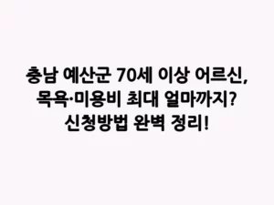 - 충남 예산군 70세 이상 어르신, 목욕·미용비 최대 얼마까지? 신청방법 완벽 정리!나이가 들수록 몸의 변화를 느끼는 것은 자연스러운 일입니다. 젊었을 때와 달리 사소한 일상 활동조차 부담스럽게 느껴질 때가 많죠. 특히 목욕이나 미용실 방문은 쾌적한 삶을 위해 필수적이지만, 때로는 경제적, 신체적 어려움으로 인해 망설여지기도 합니다. 하지만 걱정하지 마세요! 우리 사회는 어르신들의 존엄하고 건강한 삶을 응원하며 다양한 지원 정책을 펼치고 있습니다. 오늘은 … Read more