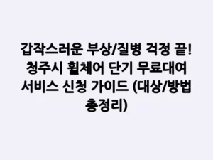 - 갑작스러운 부상/질병 걱정 끝! 청주시 휠체어 단기 무료대여 서비스 신청 가이드 (대상/방법 총정리)갑작스러운 사고나 질병으로 인해 일시적으로 휠체어가 필요해져 막막하셨던 경험 있으신가요? 병원비도 부담인데 휠체어까지 구매하기는 어렵고, 그렇다고 이동에 불편을 겪을 수는 없죠. 이럴 때 충청북도 청주시에 거주하는 시민 여러분에게 큰 힘이 될 수 있는 유용한 복지 서비스가 있습니다. 바로 ‘휠체어 단기 무료대여 서비스’인데요, 여러분의 이동 편의 증진을 위해 청주시가 제공하는 … Read more