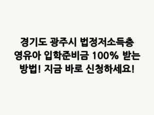 - 경기도 광주시 법정저소득층 영유아 입학준비금 100% 받는 방법! 지금 바로 신청하세요!새로운 시작은 언제나 설렘과 동시에 현실적인 고민을 안겨줍니다. 특히 어린 자녀의 어린이집 입학은 부모님에게 큰 기쁨이지만, 동시에 만만치 않은 입학 준비금으로 인해 경제적 부담을 느끼게 하는데요. 법정저소득층 가정의 경우 이러한 부담이 더욱 크게 다가올 수 있습니다. 하지만 걱정하지 마세요! 경기도 광주시에서는 법정저소득층 영유아 가구를 위한 특별한 입학준비금 지원 사업을 … Read more