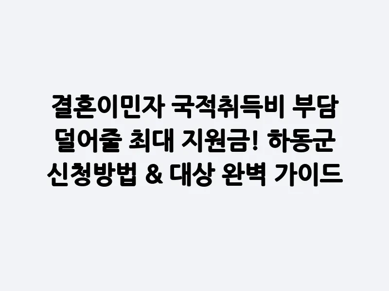 오늘은 경상남도 하동군에서 국제결혼 이민자분들의 안정적인 한국사회 정착을 돕기 위해 마련한 ‘결혼이민자 국적취득비 지원’ 정책에 대해 자세히 알아보겠습니다. 이 글을 통해 지원 대상, 내용, 그리고 가장 중요한 신청 방법까지 완벽하게 파악하시고, 재정적 부담을 확 줄이시길 바랍니다!