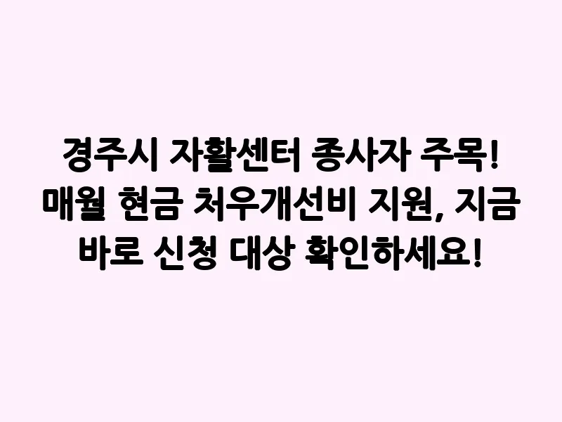 경주시 자활센터 종사자 주목! 매월 현금 처우개선비 지원, 지금 바로 신청 대상 확인하세요!