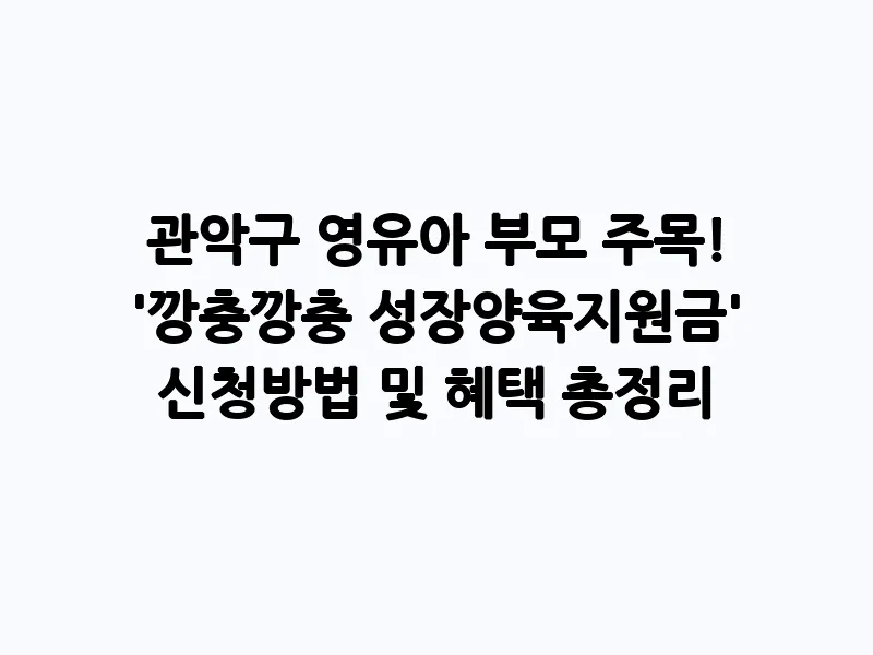 육아는 세상에서 가장 소중하고 아름다운 일이지만, 동시에 만만치 않은 경제적 부담을 동반하기도 합니다. 특히 아이들이 쑥쑥 자라는 시기에는 필요한 것이 한두 가지가 아니죠. 이러한 부모님들의 어려움을 덜어주고, 아이들이 더 밝고 건강하게 성장할 수 있도록 돕기 위해 서울 관악구에서 특별한 지원 정책을 마련했습니다!