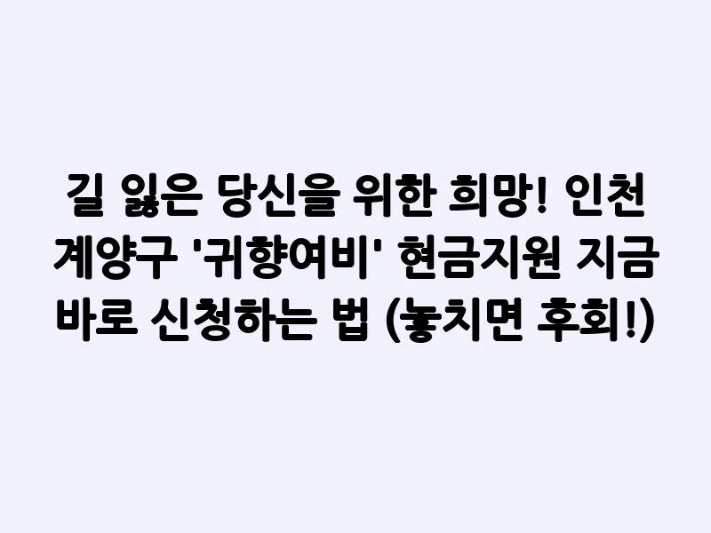 길 잃은 당신을 위한 희망! 인천 계양구 ‘귀향여비’ 현금지원 지금 바로 신청하는 법 (놓치면 후회!)
