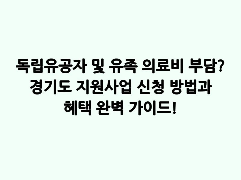 나라를 위해 헌신하신 독립유공자와 그 유족분들께, 의료비 부담은 결코 가볍지 않은 무게입니다. 갑작스러운 질병이나 지속적인 치료로 인한 본인부담금은 큰 걱정거리가 될 수 있습니다. 경기도에서는 이러한 어려움을 덜어드리고자 ‘독립유공자 의료비 지원사업’을 운영하고 있습니다. 본인부담금 걱정 없이 편안하게 치료받으실 수 있도록, 지금부터 이 사업의 모든 것을 자세히 알려드리겠습니다.