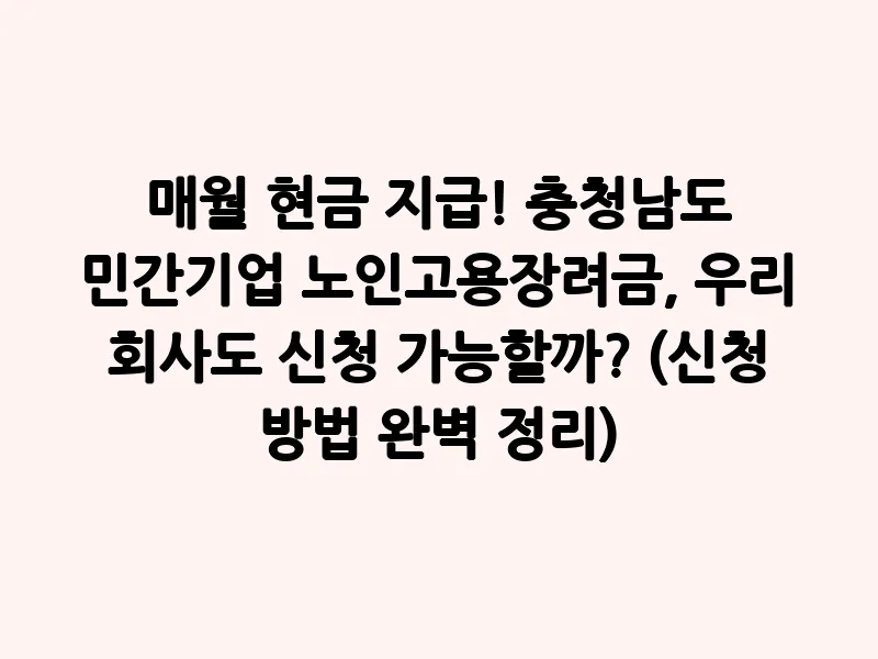 - 지원 대상: 충청남도 내 민간 중소기업이 노인(만 60세 이상)을 고용하는 경우 해당됩니다.