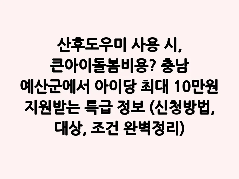 - 핵심 내용: 산후도우미 사용 기간 중, 만 12세 이하 큰아이의 돌봄 서비스 추가 비용을 지원합니다.