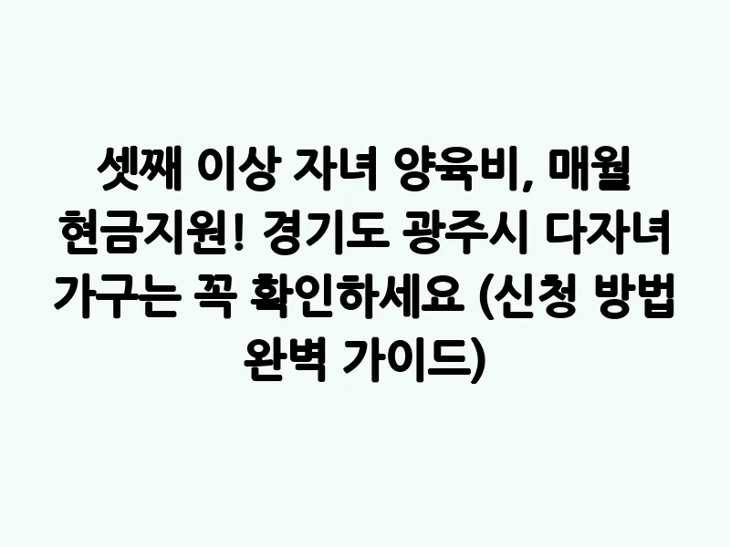 - 특히, 경기도 광주시에 거주하는 다자녀 가구라면 이 지원 혜택을 놓치지 마세요! (세부 조건은 지자체 조례 및 예산에 따라 상이할 수 있습니다.)