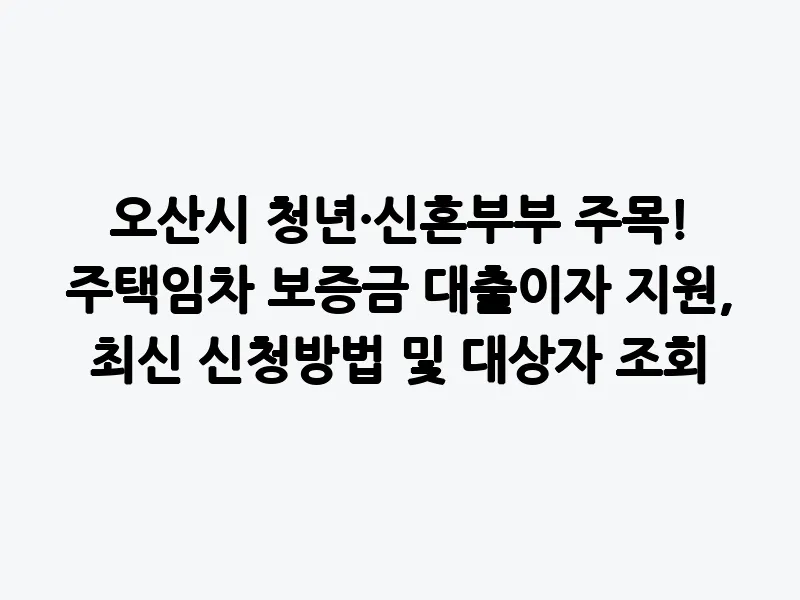 치솟는 전월세와 대출금리 때문에 주거비 걱정이 많으시죠? 특히 사회생활을 시작하는 청년들과 새로운 가정을 꾸리는 신혼부부에게 ‘내 집 마련’은 물론 ‘안정적인 보금자리’마저 멀게만 느껴질 때가 많습니다. 하지만 경기도 오산시에서는 이런 여러분의 주거 부담을 덜어주기 위해 아주 유용한 지원사업을 진행하고 있습니다. 바로 오산시 청년 및 신혼부부 주택임차 보증금 대출이자 지원사업인데요, 어떻게 신청하고 어떤 혜택을 받을 수 있는지 지금부터 자세히 알아보겠습니다.