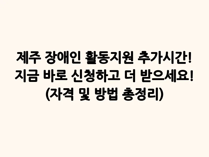 활동지원 서비스 시간이 늘 부족하게 느껴지셨나요? 자립적인 생활과 사회 참여를 꿈꾸는 장애인분들을 위해 제주특별자치도 제주시가 특별한 추가 지원책을 마련했습니다.