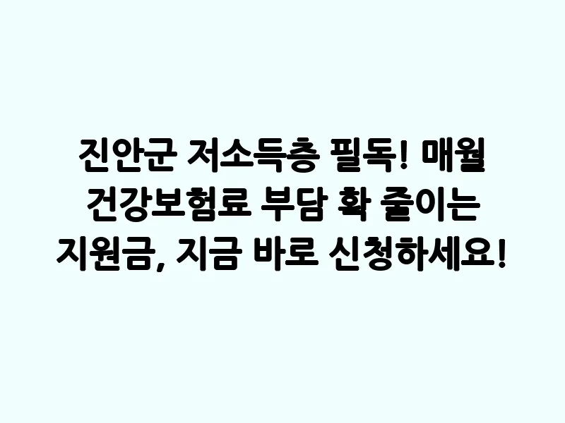 매월 고정적으로 지출되는 건강보험료, 특히 저소득층에게는 결코 가볍지 않은 부담일 텐데요. 아프면 병원에 가야 하는데, 건강보험료 걱정부터 앞선다면 너무나 안타까운 일입니다. 다행히 진안군에서는 이러한 어려움을 겪는 저소득 주민들을 위해 국민건강보험료를 지원하는 반가운 제도를 운영하고 있습니다. 이 글을 통해 매월 나가는 건강보험료 부담을 덜고, 건강한 생활을 유지할 수 있는 방법을 자세히 알려드리겠습니다!