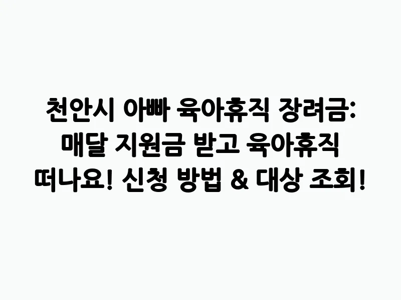 천안시 아빠 육아휴직 장려금: 매달 지원금 받고 육아휴직 떠나요! 신청 방법 & 대상 조회!