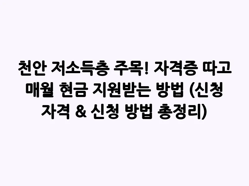 - 신청 장소: 거주지 관할 읍·면·동 행정복지센터 또는 천안시청 복지 관련 부서에 문의하시기 바랍니다.