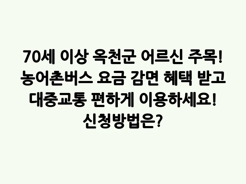 나이가 들수록 외출이 쉽지 않고, 특히 대중교통 이용은 부담스러울 때가 많습니다. 버스 요금은 점점 오르고, 거동이 불편해지는 어르신들에게는 이동 자체가 큰 도전이 될 수 있죠. 하지만 이제 걱정 마세요! 충청북도 옥천군에서 어르신들의 이동권을 보장하고 대중교통 이용을 활성화하기 위한 반가운 소식을 발표했습니다. 바로 ‘농어촌버스 요금체계 개선을 통한 노인 등 대중교통 이용 활성화 지원사업’인데요, 70세 이상 어르신이라면 누구나 혜택을 받을 수 있습니다.