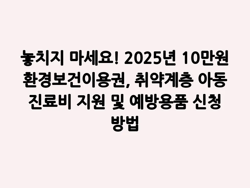 놓치지 마세요! 2025년 10만원 환경보건이용권, 취약계층 아동 진료비 지원 및 예방용품 신청 방법