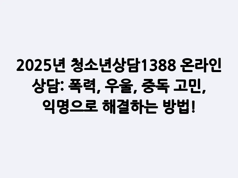 2025년 청소년상담1388 온라인 상담: 폭력, 우울, 중독 고민, 익명으로 해결하는 방법!