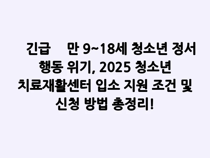 만 9~18세 청소년 정서 행동 위기, 2025 청소년 치료재활센터 입소 지원 조건 및 신청 방법 총정리!