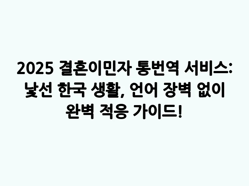 2025 결혼이민자 통번역 서비스: 낯선 한국 생활, 언어 장벽 없이 완벽 적응 가이드!