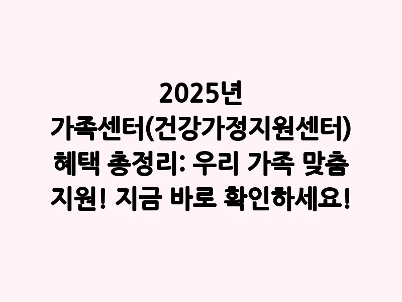 2025년 가족센터(건강가정지원센터) 혜택 총정리: 우리 가족 맞춤 지원! 지금 바로 확인하세요!