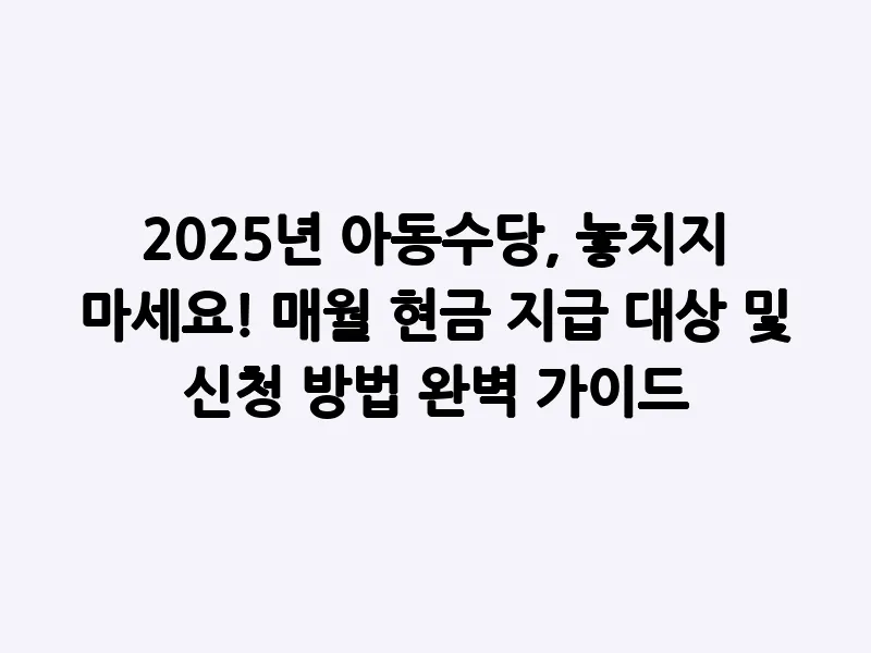 2025년 아동수당, 놓치지 마세요! 매월 현금 지급 대상 및 신청 방법 완벽 가이드