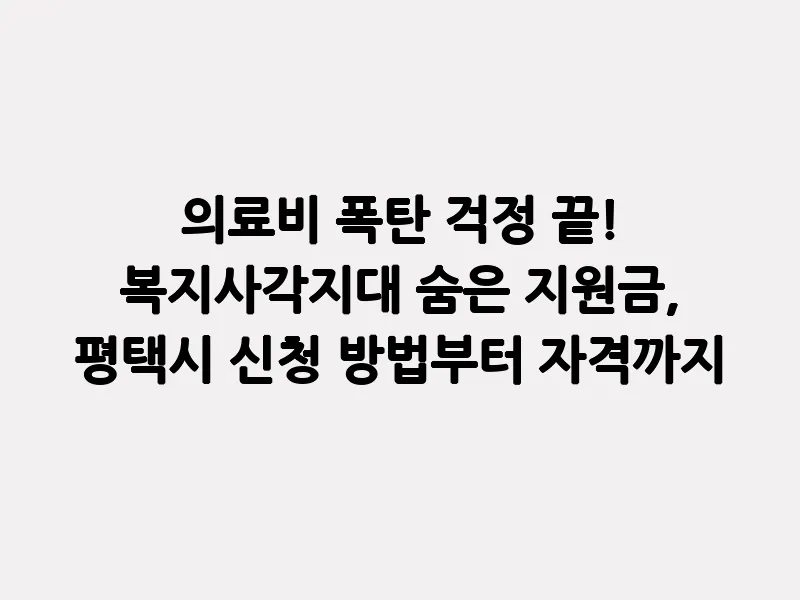 의료비 폭탄 걱정 끝! 복지사각지대 숨은 지원금, 평택시 신청 방법부터 자격까지