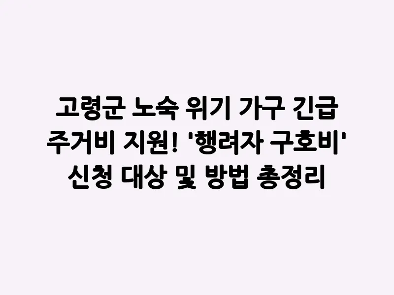 고령군 노숙 위기 가구 긴급 주거비 지원! ‘행려자 구호비’ 신청 대상 및 방법 총정리