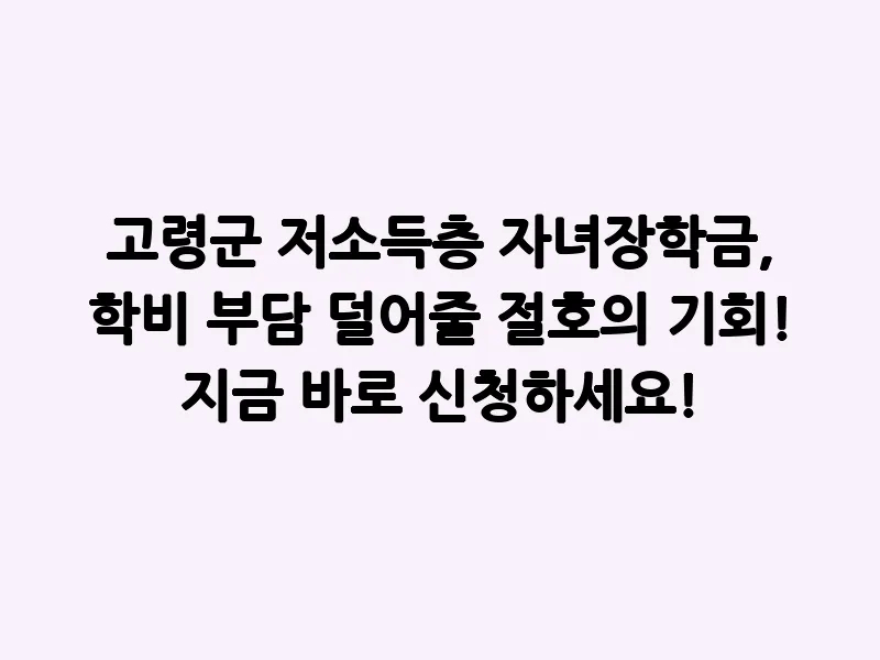 고령군 저소득층 자녀장학금, 학비 부담 덜어줄 절호의 기회! 지금 바로 신청하세요!
