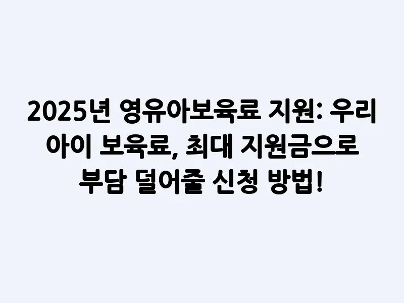 2025년 영유아보육료 지원: 우리 아이 보육료, 최대 지원금으로 부담 덜어줄 신청 방법!