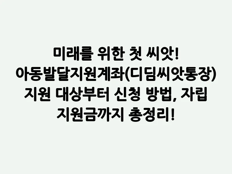 미래를 위한 첫 씨앗! 아동발달지원계좌(디딤씨앗통장) 지원 대상부터 신청 방법, 자립 지원금까지 총정리!