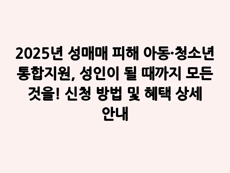 2025년 성매매 피해 아동·청소년 통합지원, 성인이 될 때까지 모든 것을! 신청 방법 및 혜택 상세 안내