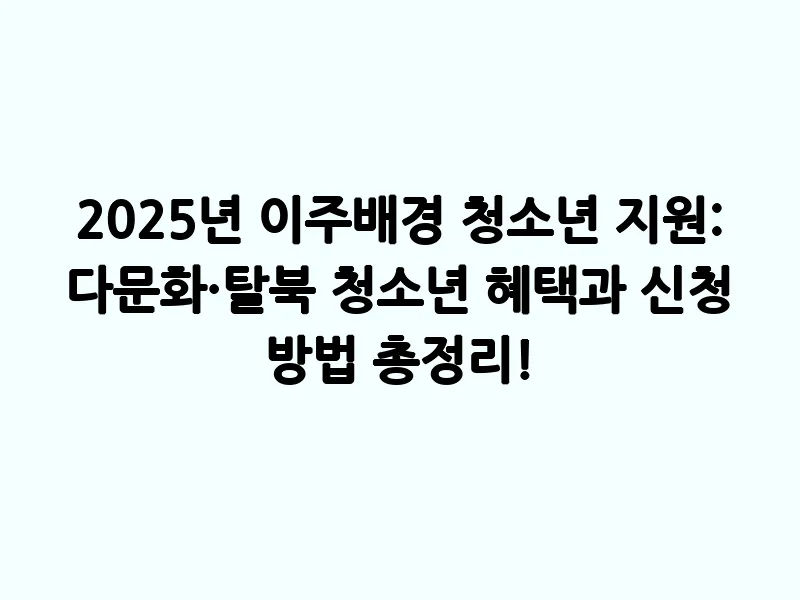 2025년 이주배경 청소년 지원: 다문화·탈북 청소년 혜택과 신청 방법 총정리!