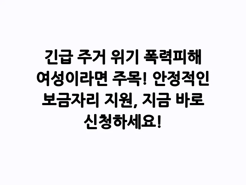 긴급 주거 위기 폭력피해 여성이라면 주목! 안정적인 보금자리 지원, 지금 바로 신청하세요!