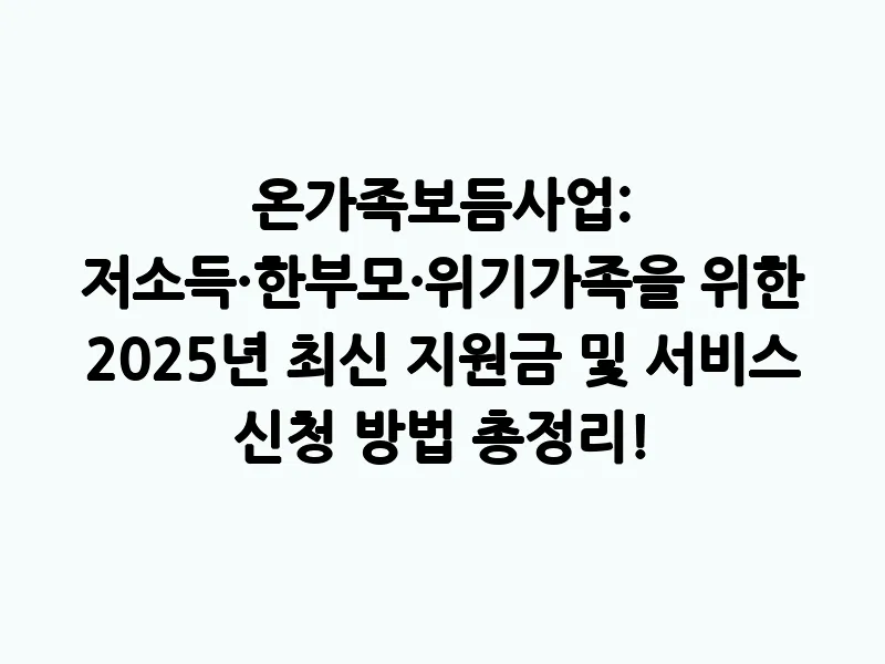 온가족보듬사업: 저소득·한부모·위기가족을 위한 2025년 최신 지원금 및 서비스 신청 방법 총정리!