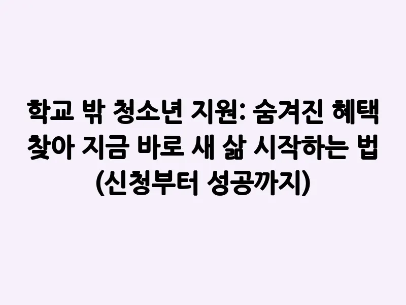 학교 밖 청소년 지원: 숨겨진 혜택 찾아 지금 바로 새 삶 시작하는 법 (신청부터 성공까지)