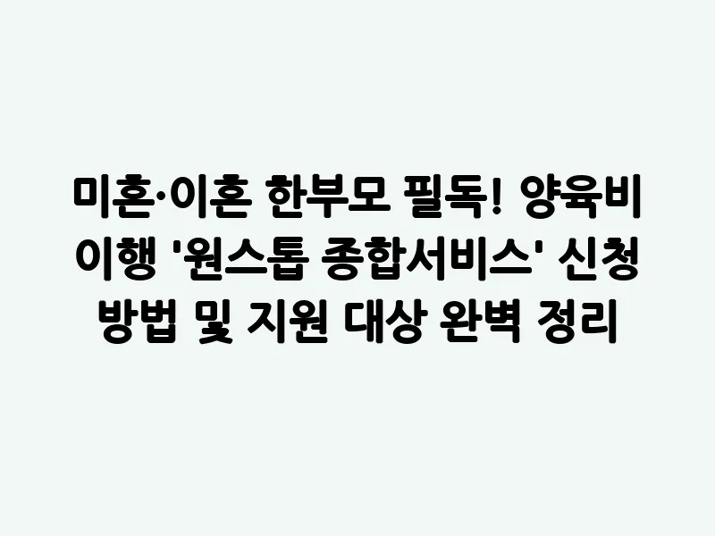 미혼·이혼 한부모 필독! 양육비 이행 ‘원스톱 종합서비스’ 신청 방법 및 지원 대상 완벽 정리