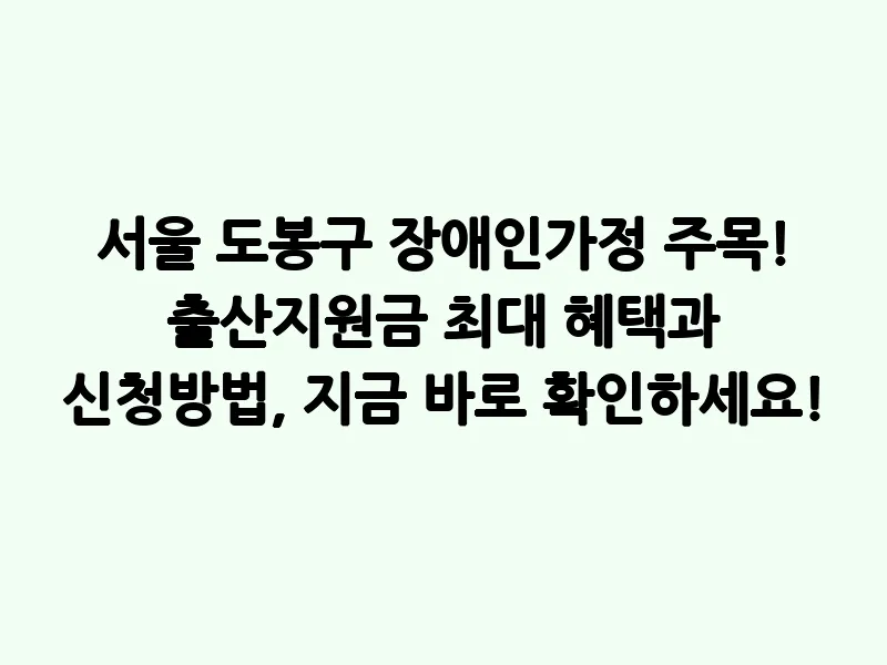 서울 도봉구 장애인가정 주목! 출산지원금 최대 혜택과 신청방법, 지금 바로 확인하세요!