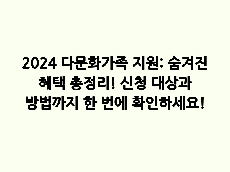 2024 다문화가족 지원: 숨겨진 혜택 총정리! 신청 대상과 방법까지 한 번에 확인하세요!