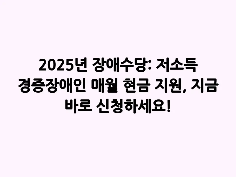 2025년 장애수당: 저소득 경증장애인 매월 현금 지원, 지금 바로 신청하세요!