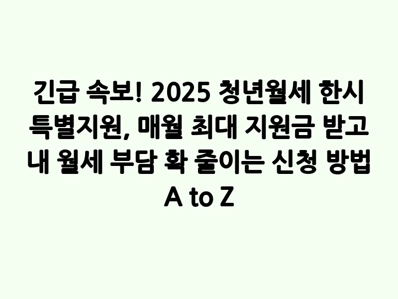 긴급 속보! 2025 청년월세 한시 특별지원, 매월 최대 지원금 받고 내 월세 부담 확 줄이는 신청 방법 A to Z